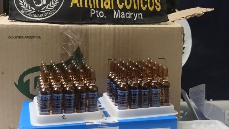 - Se secuestraron 50 ampollas de fentanilo líquido y 10 frascos de remifentanilo en polvo en la Terminal de Ómnibus de Puerto Madryn.