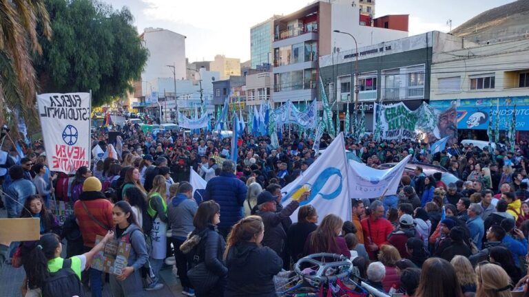 La comunidad de Madryn se movilizó en una marcha de defensa de la educación pública este martes por la tarde en la plaza Kompuchewe. El acto central fue el punto culminante de la manifestación que comenzó en Km 4 y pasó por el Ceret y el monumento al Carrero Patagónico.