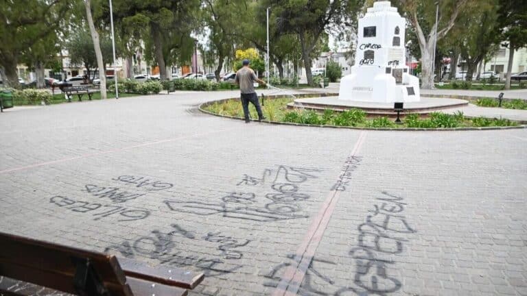 Plaza San Martín de Puerto Madryn vandalizada: Intendente expresa su repudio